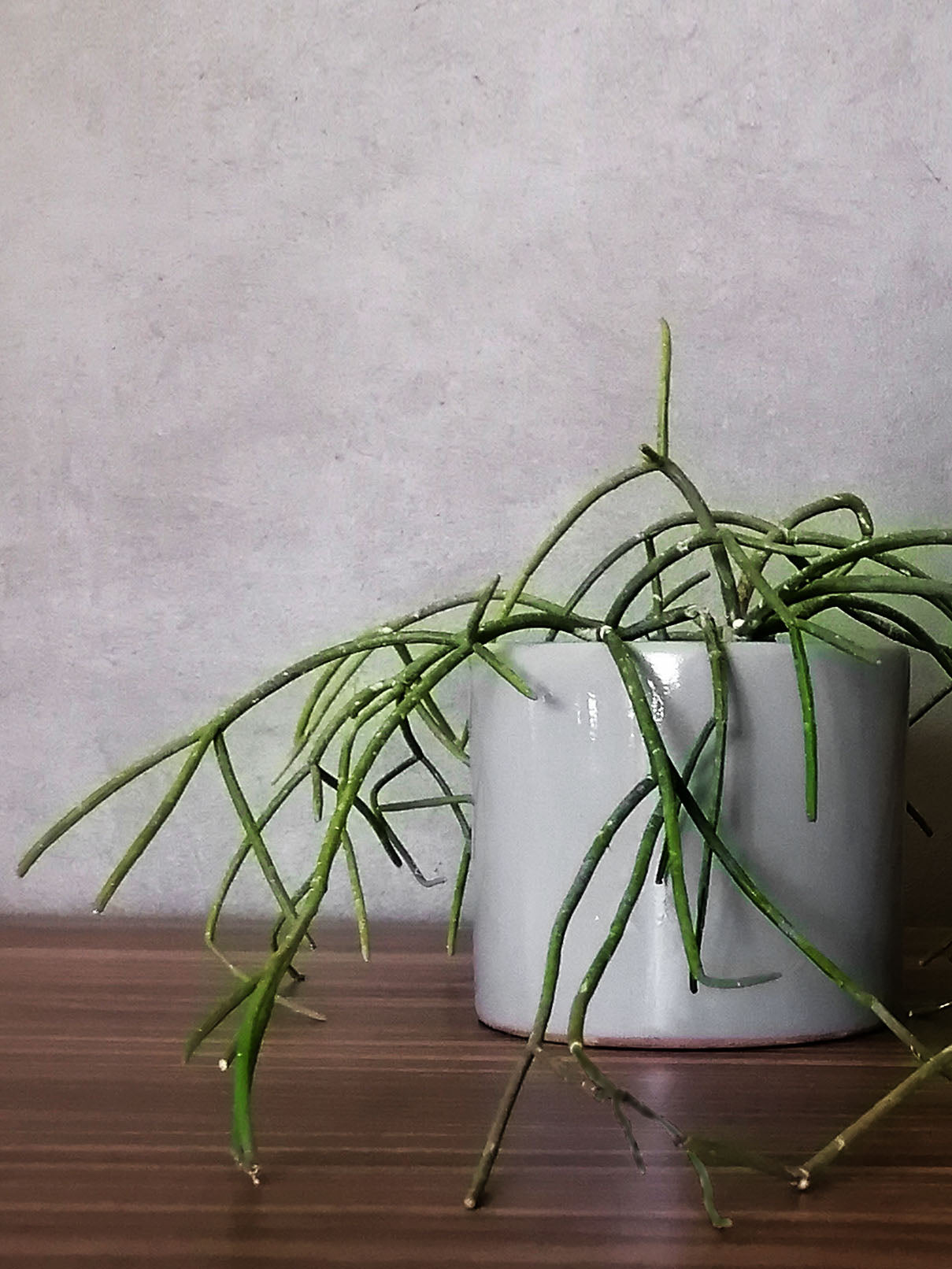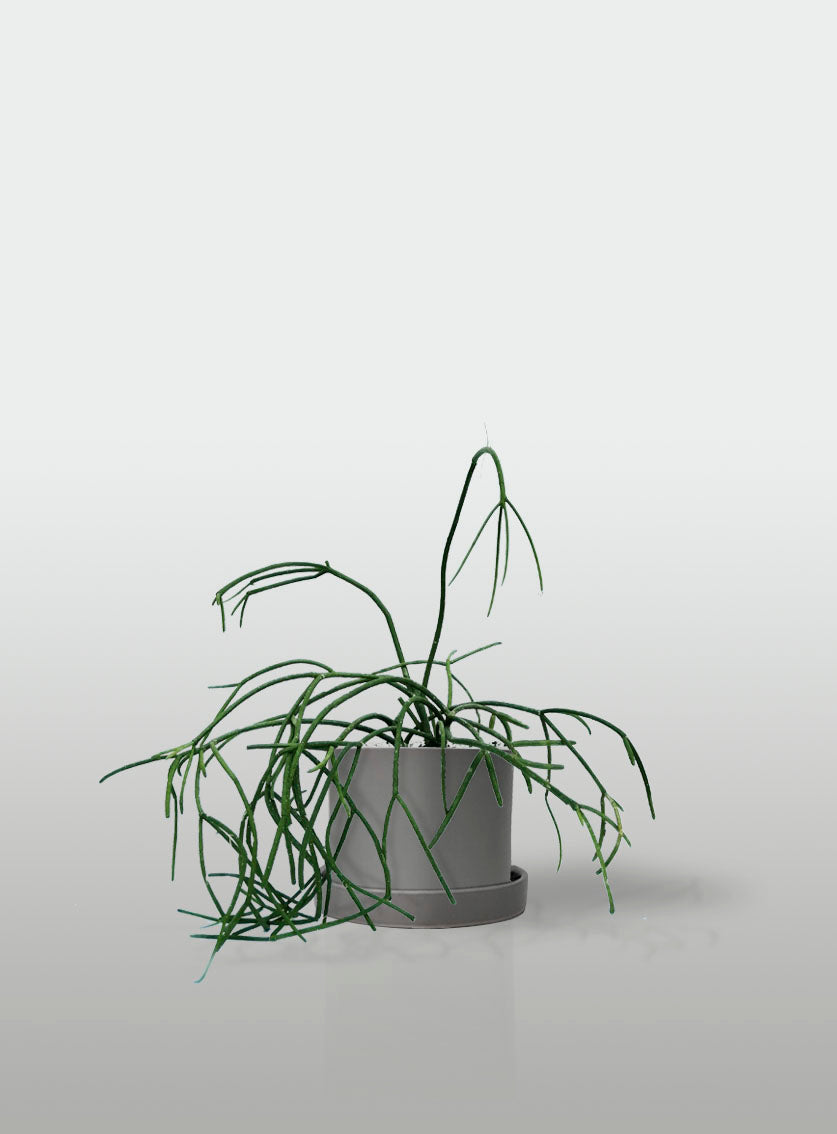 Los Rhipsalis Baccifera son un tipo de cactus tropical proveniente de Centro y Sudamérica. A diferencia de los cactus desérticos, los Ripsalis no necesitan sol directo para desarrollarse. Sus hojas en forma de tallos pueden crecer muchísimo lo que la ha convertido en una planta muy popular.